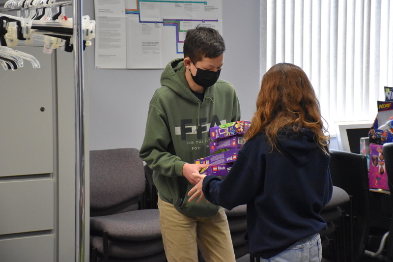 After unloading the items, FFA members got to work organizing all of the other donations that’ve been pouring into the non-profit from individuals, businesses, churches, government agencies and community groups in recent weeks. The items will soon be distributed during a few shopping days, when those in need will come to the building and select presents for their children as part of the program.