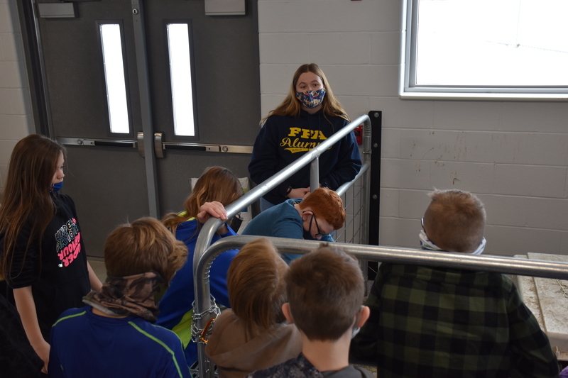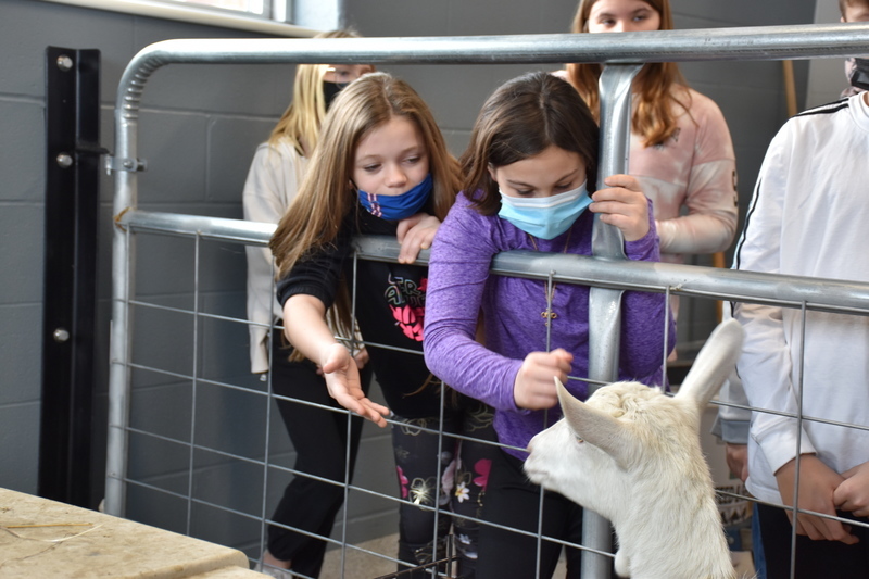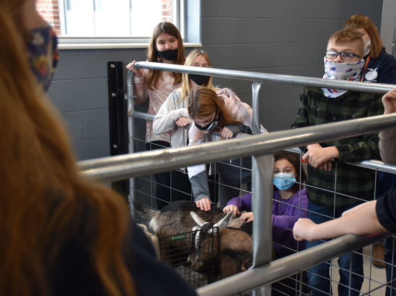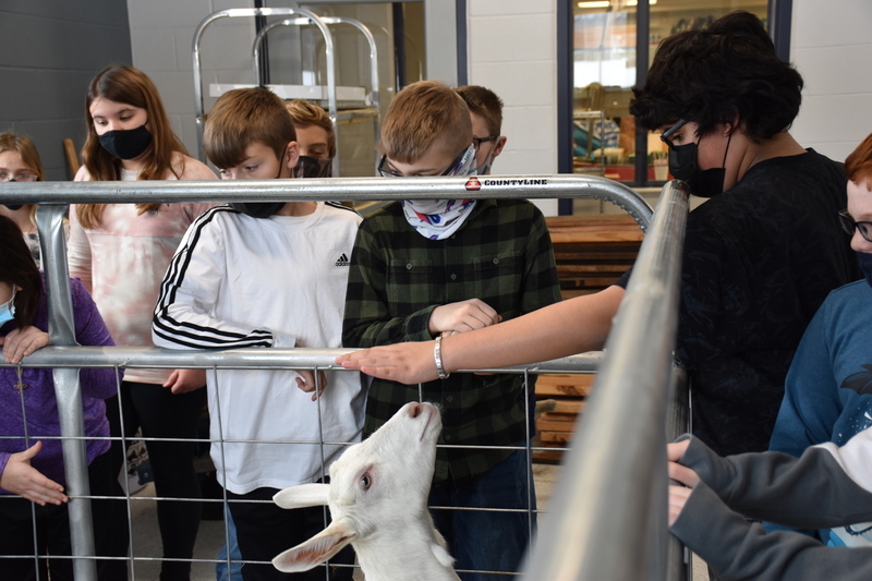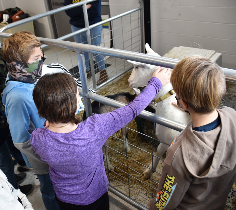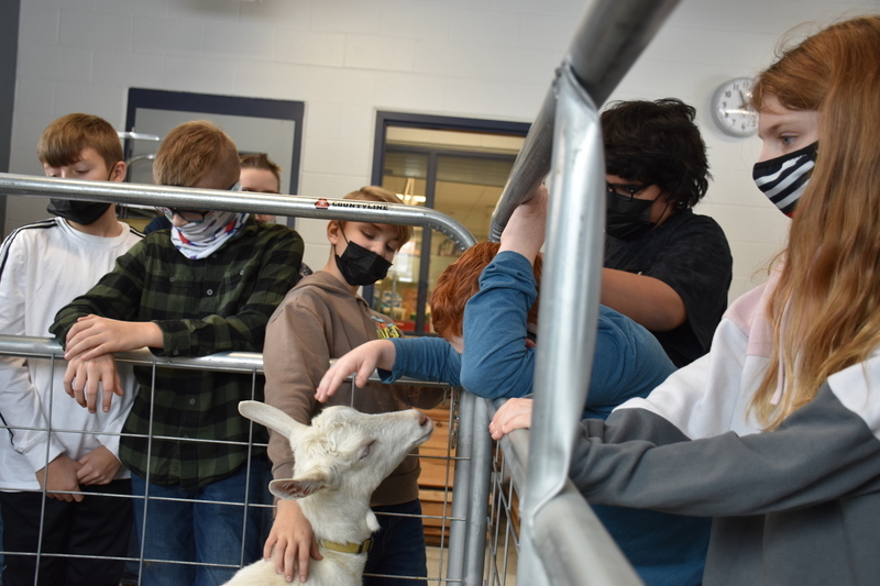 Students in Mrs. Amanda Datzler’s sixth grade class had lots of questions when it was their turn to meet the goats during their introduction to career and technical education class with Barber.