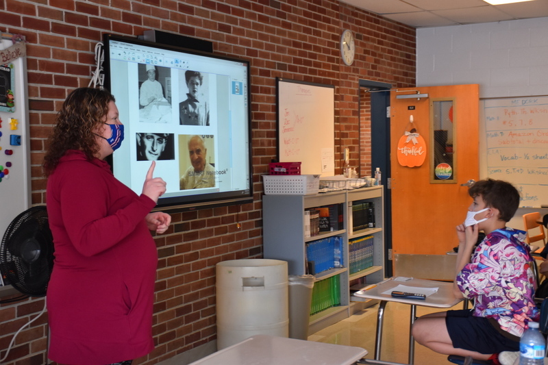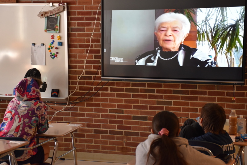 Students in Mrs. Erin Holt’s middle school ELA class watch an interview of Auschwitz survivor Ruth Cohen, who lost more than 60 family members during the Holocaust.
