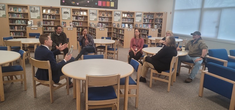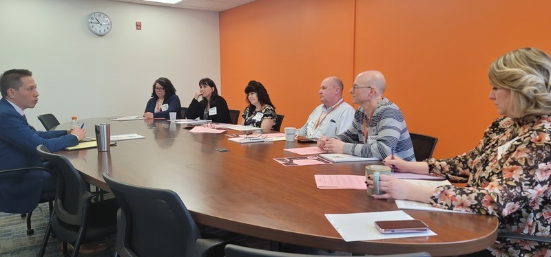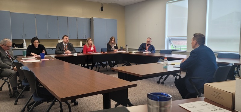 Kiel Illg, Ph.D., is pictured interviewing with stakeholder groups during a visit to Attica Central Schools in April.